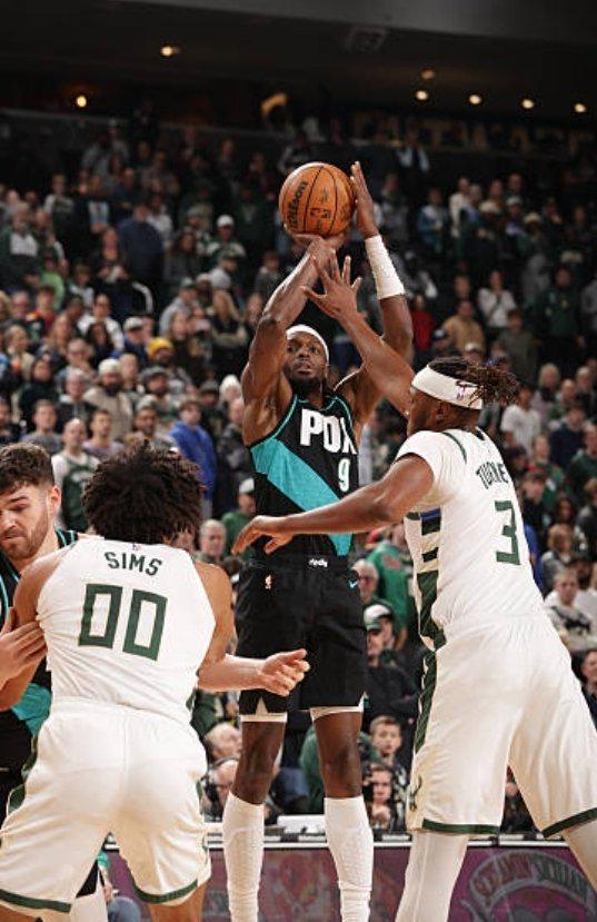 杰拉米·格兰特本场砍下35分4篮板4助攻的全面数据,成为球队取胜的首要功臣。从比赛伊始,他就展现出强烈的进攻欲望,首节独得12分为球队奠定领先基调。更重要的是,在雄鹿队第二节反超比分的关键时刻,正是格兰特的稳定罚球和外线火力帮助球队重新掌握主动权。