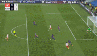 第65分钟,莱万送出助攻,奥尔莫禁区打门得分,帮助巴萨2-1完成反超。