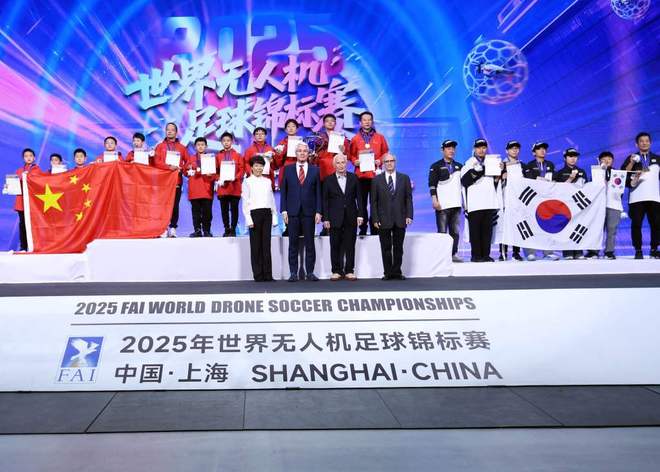 11月15日至18日,2025年世界无人机足球锦标赛在上海体育馆举行,经过四天的精彩角逐,中国队成功包揽了F9A-A、F9A-B两个组别的冠亚军。