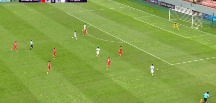 第48分钟,崔俊右肋横敲,杜甘季奇调整后在罚球区右侧横传,林加德罚球点左侧脚弓搓射破门,上海海港0-1落后!