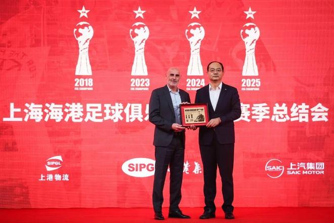 总结会上,上港集团党委书记于福林表示,2025年是硕果盈枝的一年,一线队实现中超“三连冠”,海港富盛经开队在中乙站稳脚跟,各年龄段青训球员也在各项赛事中稳步成长,这些成绩是俱乐部砥砺前行的坚实足迹,更是俱乐部深耕足球、矢志卓越的生动见证。于福林肯定了穆斯卡特及其团队的卓越贡献,赞扬了队中功勋老将的坚守与传承,强调了青训与俱乐部文化建设的重要性,并提出球队要坚持富有控制力、应变灵活的技战术特色,并不断为它注入新的内涵,使之成为海港球员征战赛场的底气。
