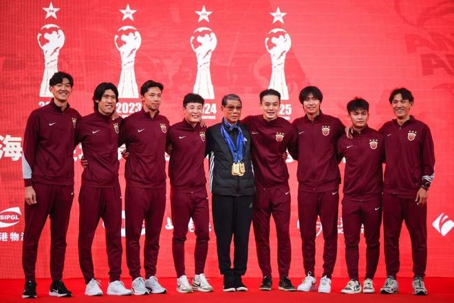 本次总结会特别邀请中国足球名宿徐根宝指导亲临现场。“祝贺海港取得三连冠,希望俱乐部再接再厉,给国家输送更多优秀的球员,让中国足球走向世界,祝海港成功!”总结会上,武磊、王燊超、颜骏凌、张琳芃、吕文君、刘若钒以及小将李新翔、蒯纪闻,共同为徐根宝戴上2025赛季冠军奖牌,令这位老帅颇为感慨,“感谢他们这一片心意,最让我高兴的是从武磊他们这批队员,到蒯纪闻、李新翔都起来了,还有刘若钒,他们一起给我戴上金牌,再重,也是一片心意!”