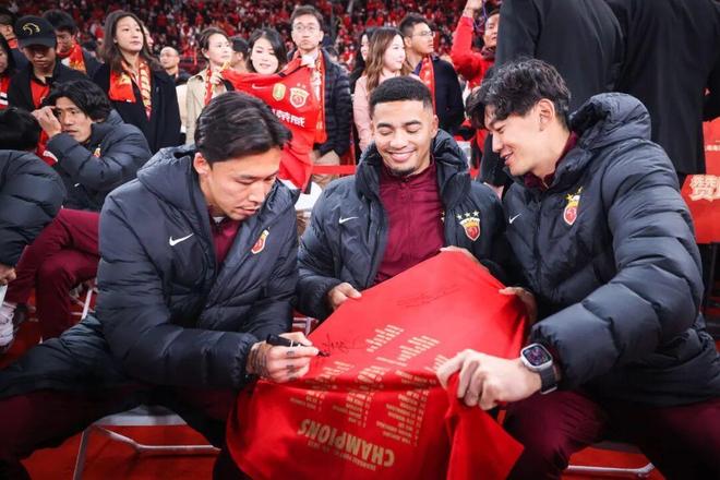 上海市副市长解冬,上海市政府副秘书长周亚明,上海市体育局党组书记、局长徐彬,上港集团党委书记于福林,上港集团党委副书记、总裁宋晓东,著名教练徐根宝,上海市浦东新区副区长徐欣,上海市足球协会主席柳海光,上港集团副总裁、上海海港足球俱乐部董事长张敏,新民晚报社副总编辑杜旻,上海海港足球俱乐部党总支书记、总经理沙良昌,上海海港一线队主教练穆斯卡特等在印有“不止冠军 不止廿年”的卷轴上共同用印章为队徽添星。