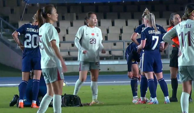 本场比赛,中国女足在开场阶段便遭遇“黑色四分钟”,防线接连出现致命失误。第11分钟,后场传球被断,霍亚特中线附近果断吊射得手;仅仅3分钟后,苏格兰通过简单长传配合再下一城;第15分钟,霍亚特再次利用中国队传球失误远距离吊门成功。短短4分钟内连丢三球,且方式如出一辙——高位逼抢下的出球慌乱、防线组织松散、门将选位与反应暴露明显短板。